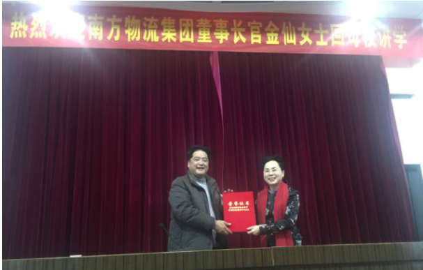 官金仙董事长还通过多媒体向师生介绍她现在的物流企业。她二十几年如一日,将一个小小的货运部发展成为现在拥有十二大物流基地、业务网点遍及全国170多个大中城市的综合型现代化物流企业——“广东江南网站网页版官网-江南(中国)有限公司”。官金仙董事长领导的江南网站网页版官网-江南(中国)在推动和引领中国民营物流企业由传统经营模式向现代经营模式转变和改革的过程中做出了积极的贡献,从担当起“振兴家族”意识——“企业家责任”意识,实现了人生道路上的重大飞跃,讲到这里,全场爆发了热烈的掌声。